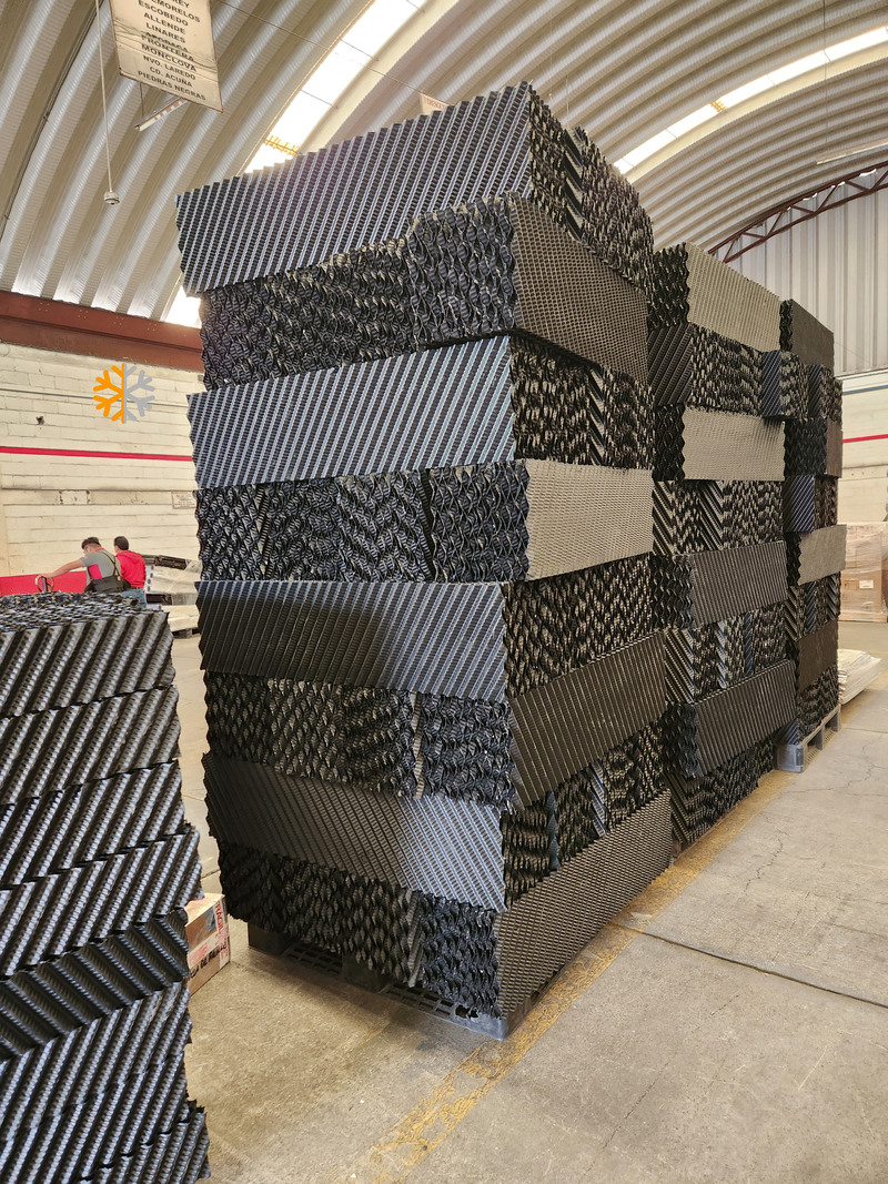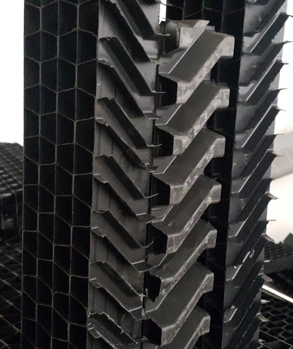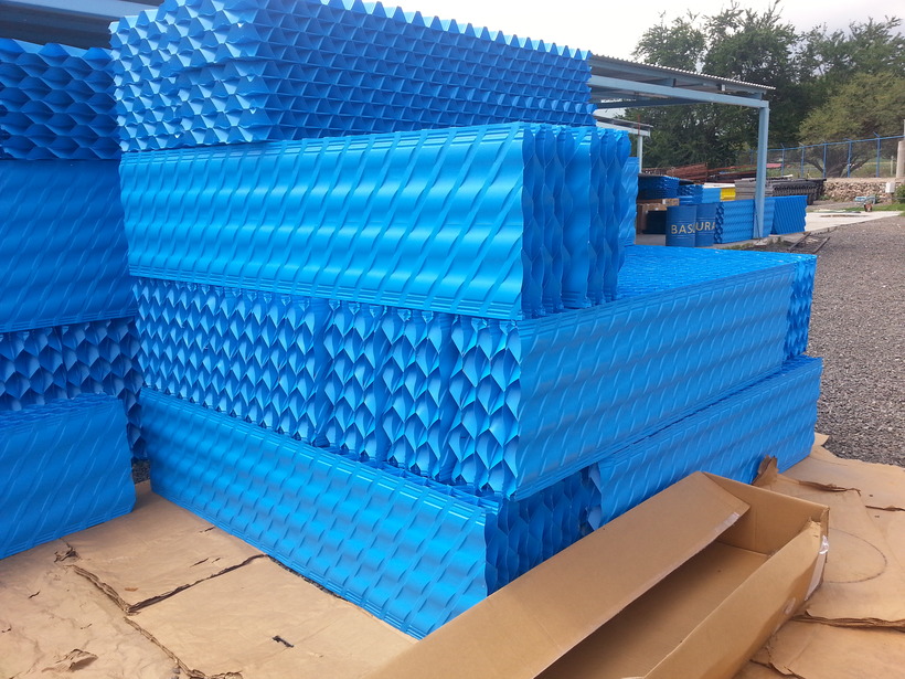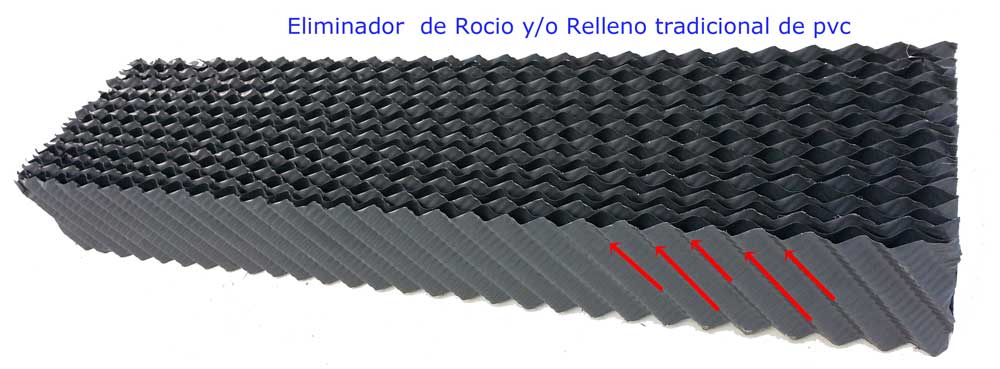 Debido a todo esto, nuestro relleno tiene mucho menos resistencia al aire, esforzándose menos el ventilador y poder trabajar más libre. El relleno está fabricado en cierto material, que beneficia al tener menos incrustación de sólidos y puede soportar altas temperaturas, contínuas sin sufir percanse alguno.