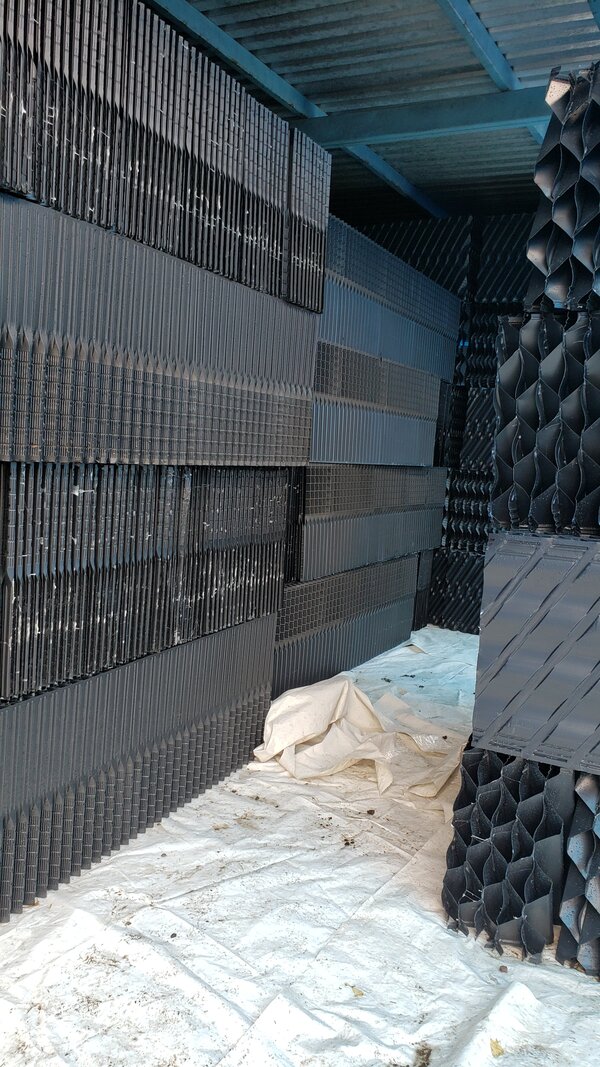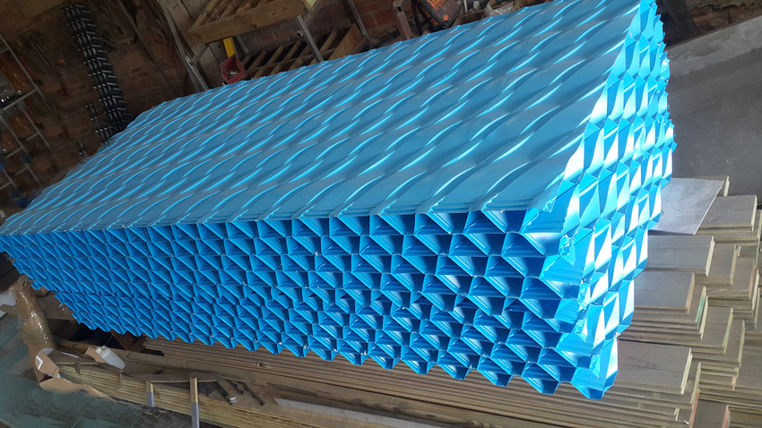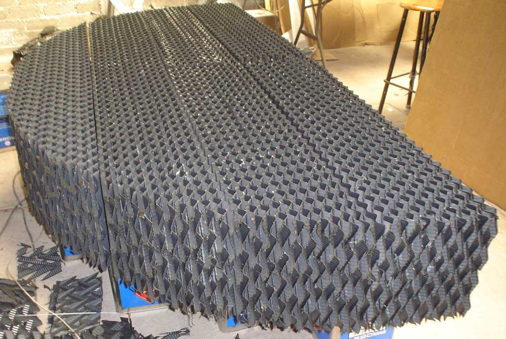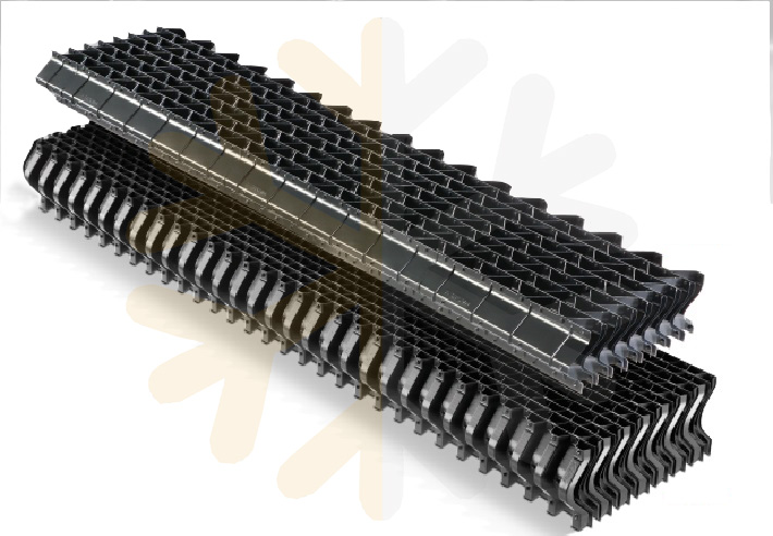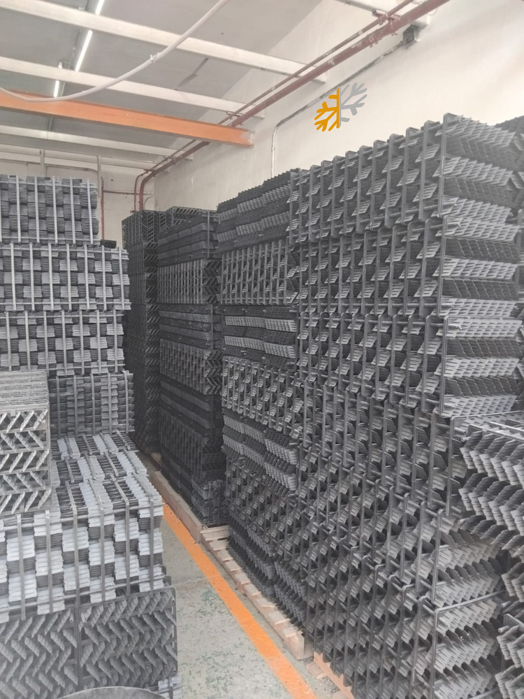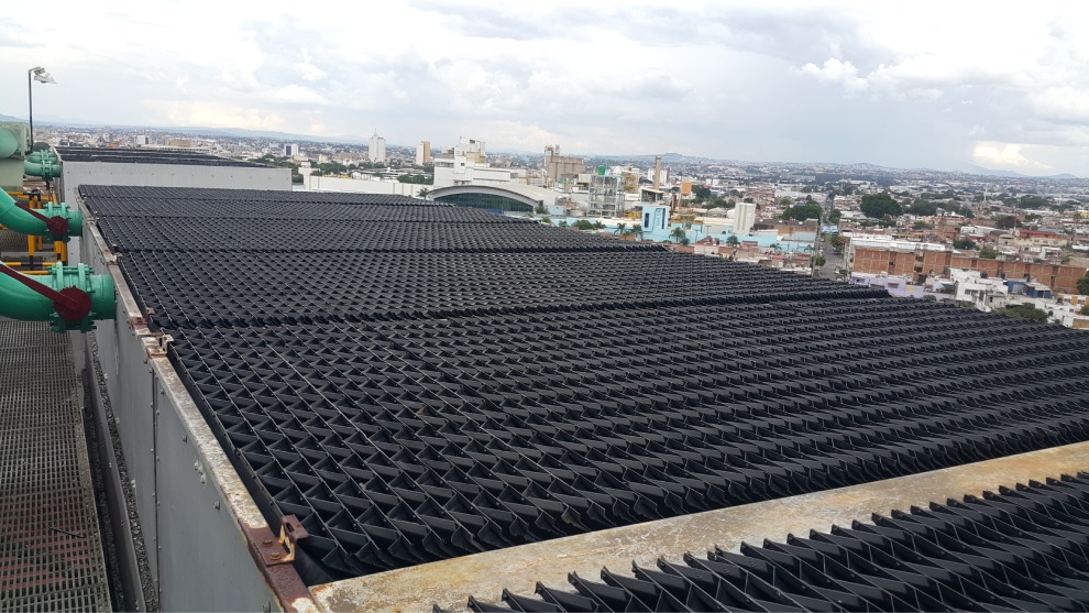 Debido a todo esto, nuestro relleno tiene mucho menos resistencia al aire, esforzándose menos el ventilador y poder trabajar más libre. El relleno está fabricado en cierto material, que beneficia al tener menos incrustación de sólidos y puede soportar altas temperaturas, contínuas sin sufir percanse alguno.
