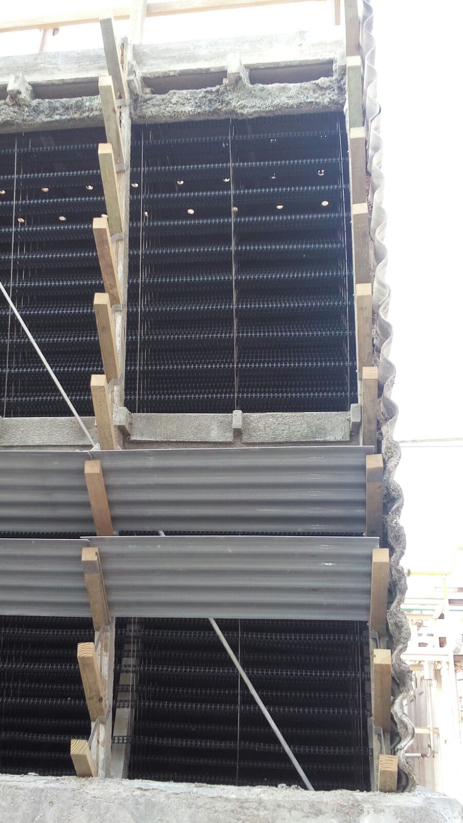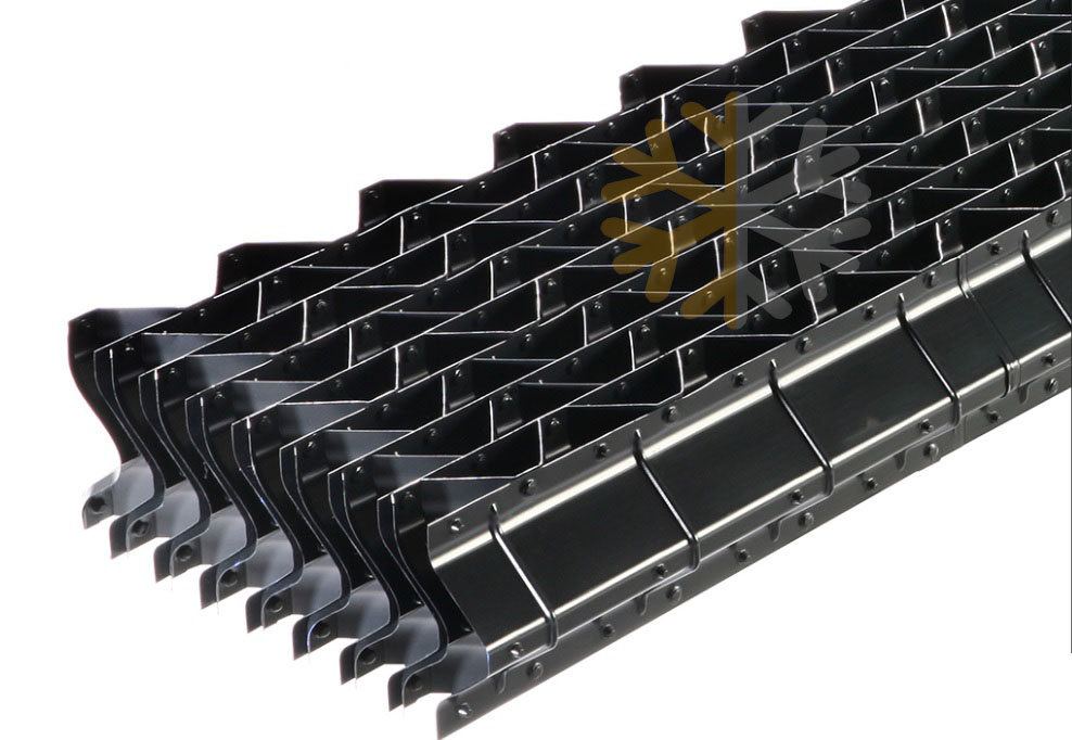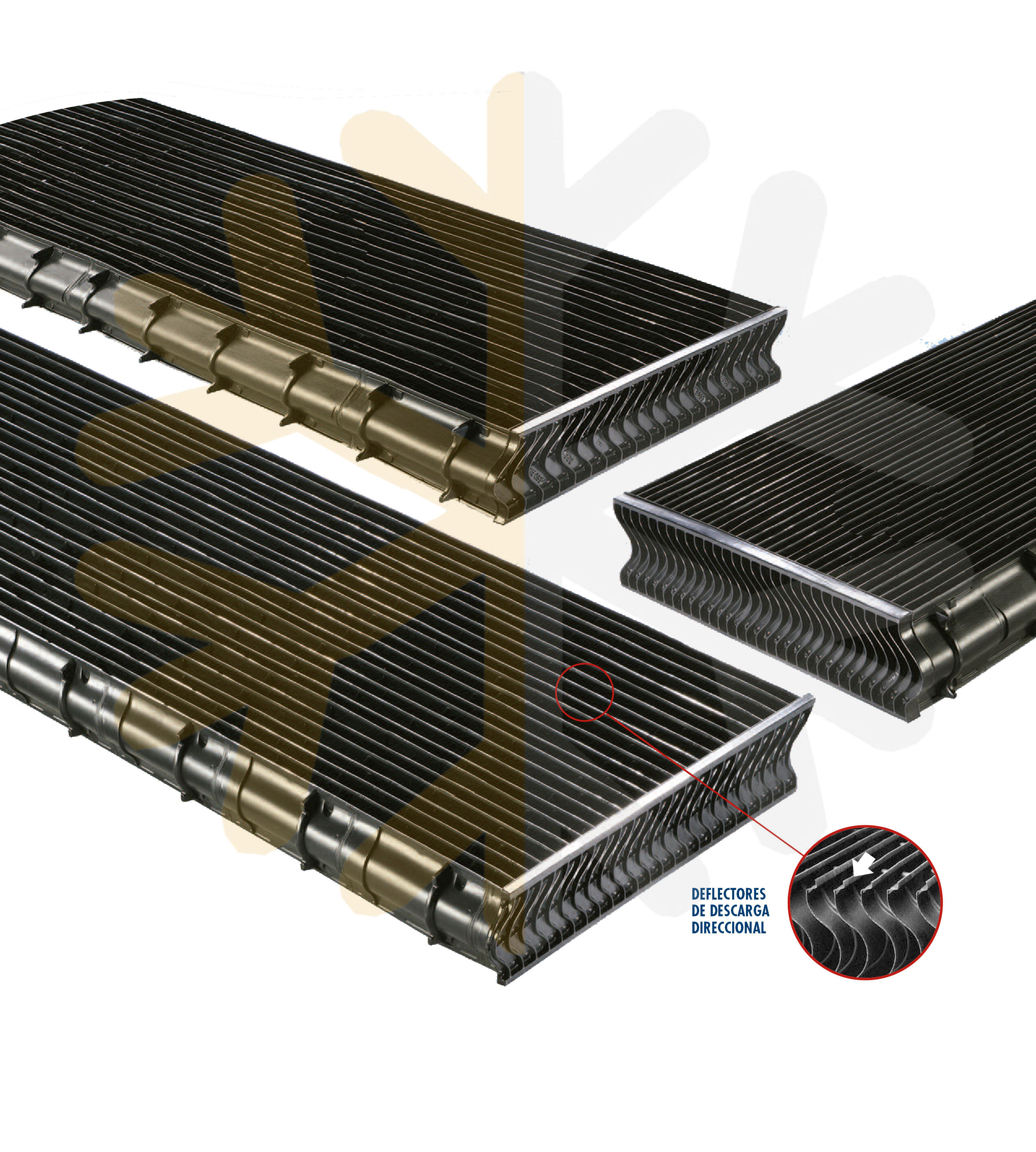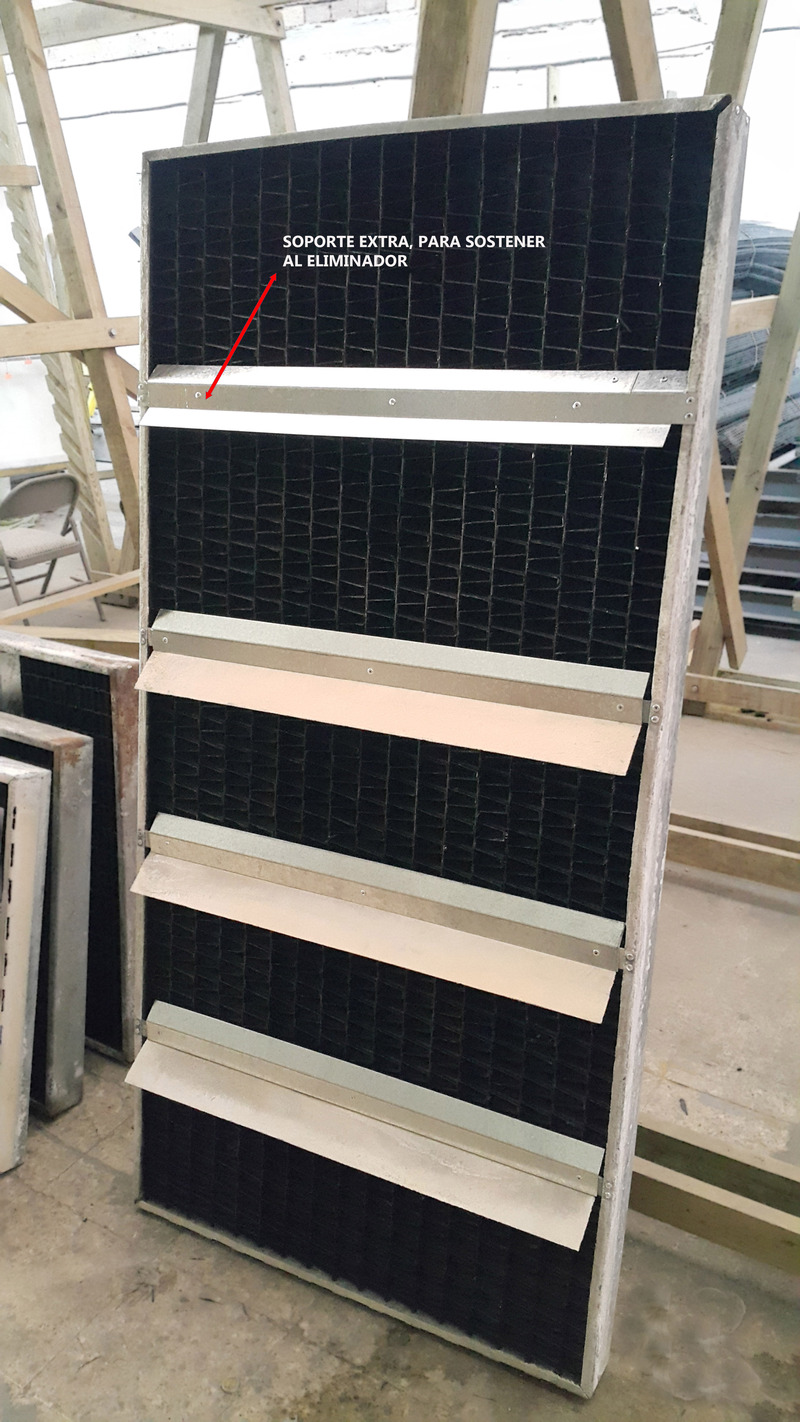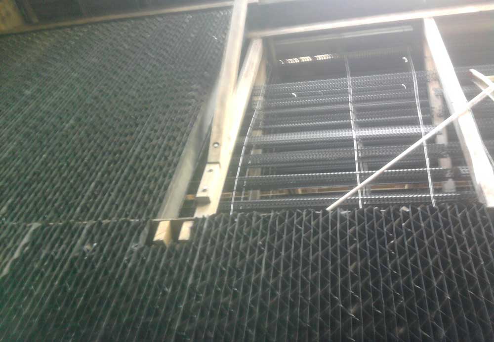 Así como también, debido a su estructura exite muy baja incrustación de sólidos. La estrutcura de nuestro relleno, permite una mayor eficiencia en el intercambio de calor debido a que exite mayor contacto del agua en cada paleta, así mismo en cada tope con que cuenta cada paleta, rompiendo la caida del agua constantemente una tras otra.
