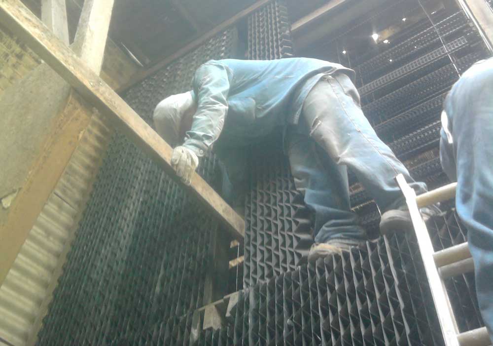 Por lo que el relleno es de casi nulo mantenimiento, y cuando sea necesario, se puede lavar a presión sin dañarlo. Meter y sacar el relleno de la torre sin dañarlo.