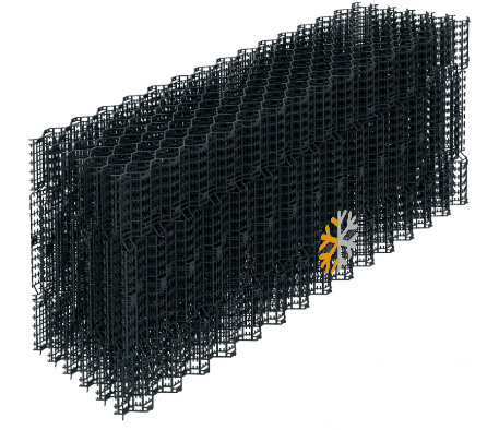 El relleno ENFRIANET de alta eficiencia, está fabricado de cierto material que no permite la incrustación de sólidos como el relleno de PVC.