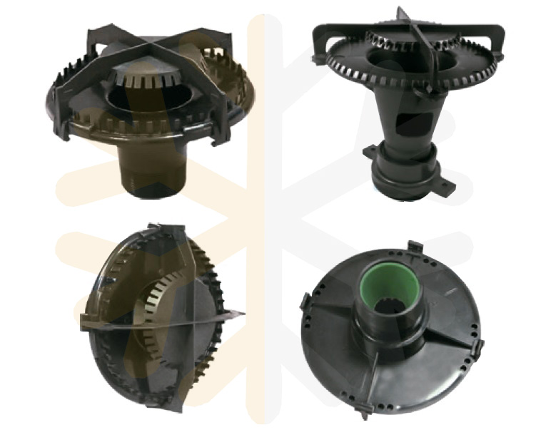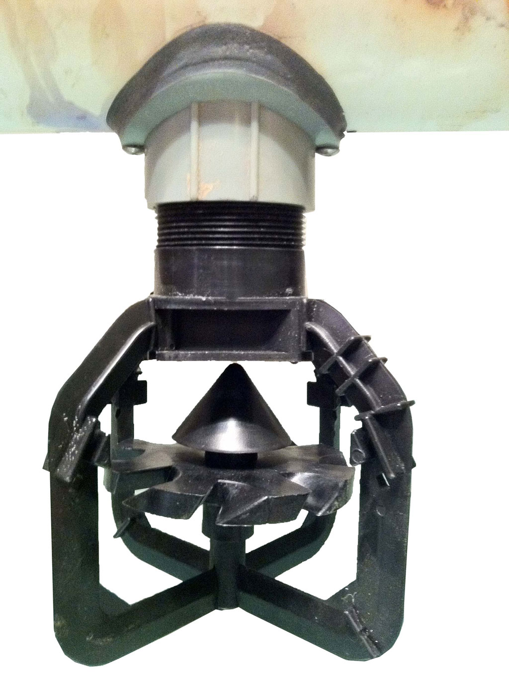 Las spreas 360° contienen unas paletas que son impulsadas por la presión de agua, haciendo girar la sprea y repartiendo el agua en forma horizontal, garantizando mayor área de contacto del agua.