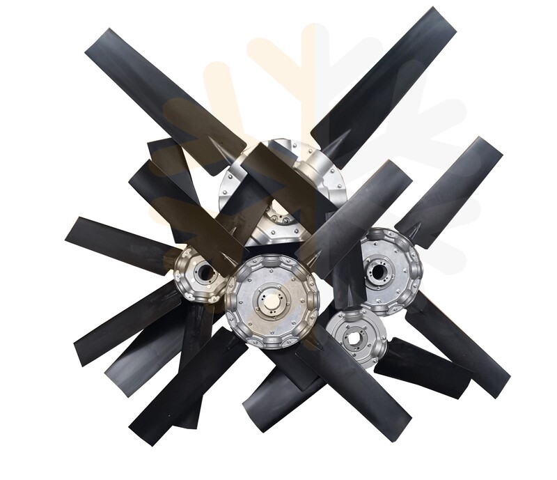 En ENFRIANET contamos con diferentes materiales de aspas, según sean las necesidades, así como gran diversidad en sus masas, como también en su ensamblaje, bushing, masa central, etc.
